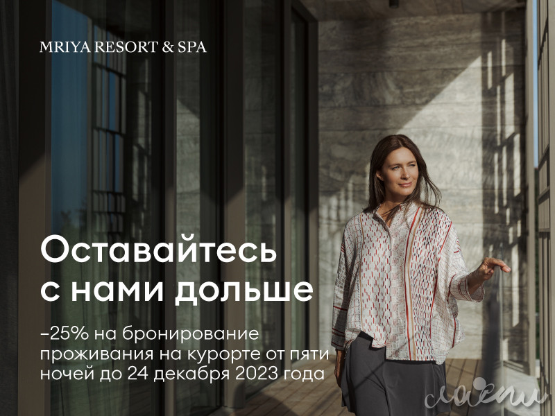 Устройте себе незабываемые выходные в любые дни недели — отдохните на курорте Мрия с выгодой 10%.