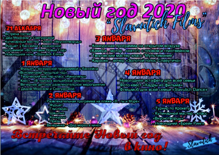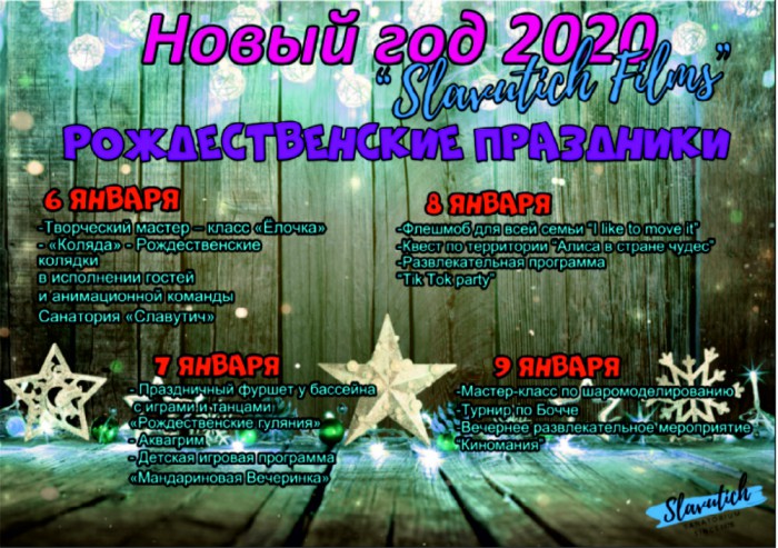 С 31 декабря на 1 января для гостей санатория увлекательная новогодняя программа«Slavutich Films», встреча с Дедом Морозом и Снегурочкой.